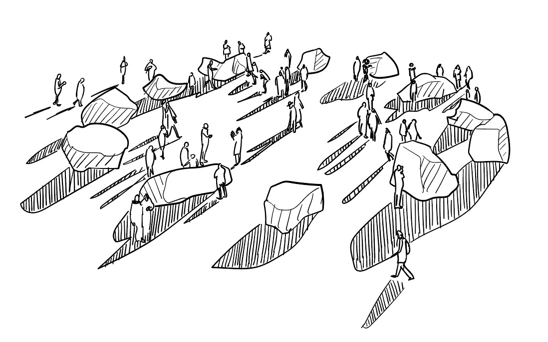 Elle suppose que ce sont les camions qu'on a entendus qui ont dû les déposer, et que ça doit être une performance. Elle en connaît plein des artistes, qui adorent faire des trucs comme ça. Elle pense que ça sert à dénoncer le réchauffement climatique.