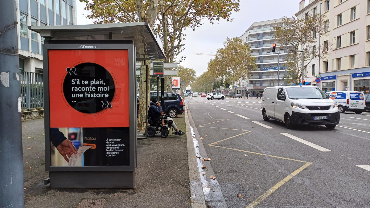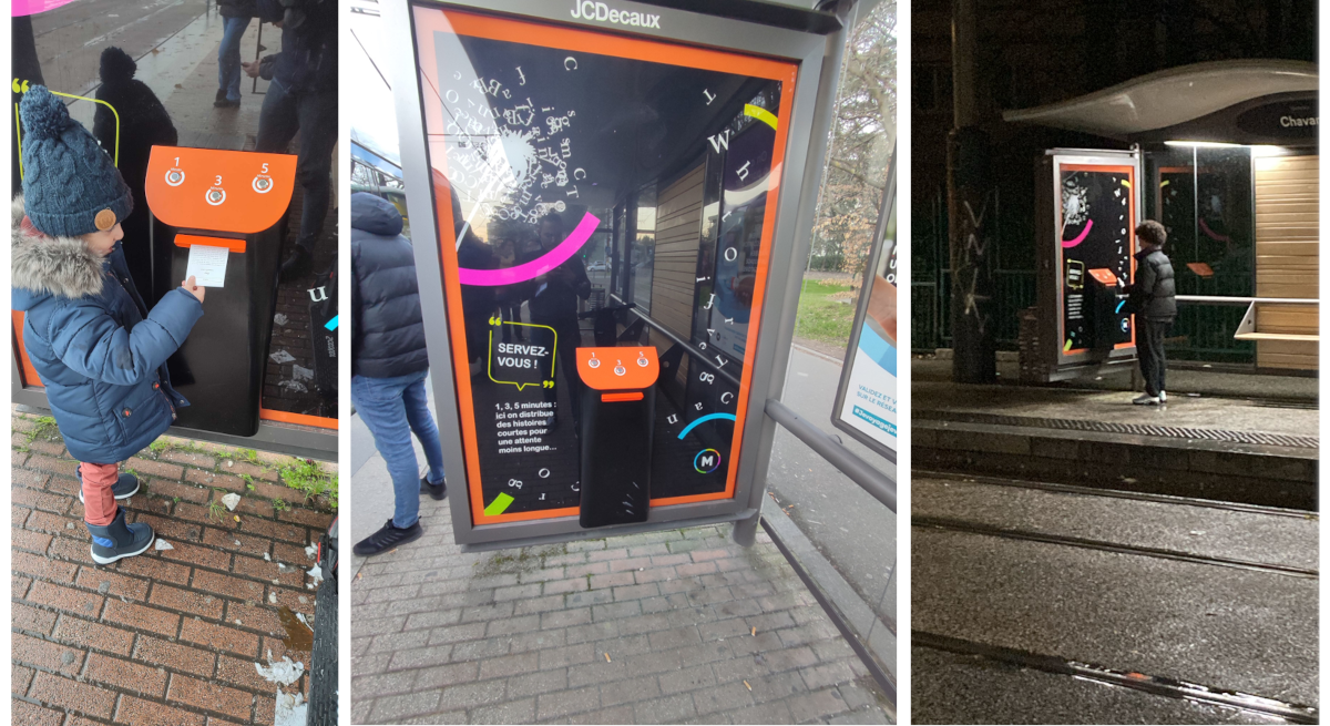 JCDecaux propose, en partenariat avec Short Edition, un nouveau service gratuit de lecture pour tous et a installé des Distributeurs d’Histoires Courtes dans des abris voyageurs des réseaus de transport grenoblois et lyonnais. C'est une première mondiale ! Le Bureau d’Études de JCDecaux s’est chargé, en collaboration avec la Direction Technique de Short Édition, d’adapter le Distributeur d’Histoires Courtes pour une utilisation en extérieur, dans l’espace public.